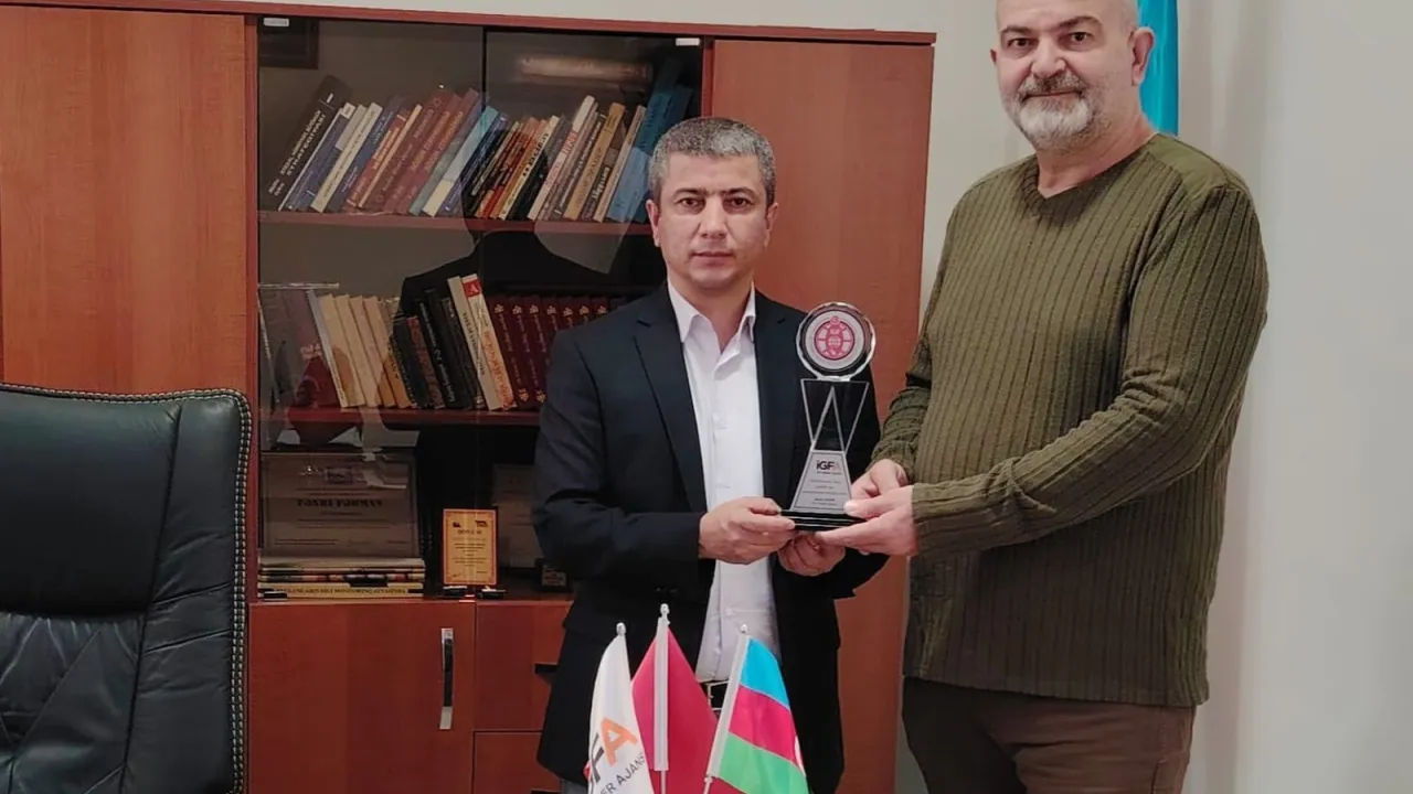 Azerbaycan'da 'Halk Cebhesi' Medya Grubu Genel Yayın Yönetmeni Ali Zülfükaroğlu, Türkiye merkezli İnternet Gazetecileri Federasyonu (İGF)'nun Azerbaycan Temsilcisi olarak atandı. İGF Genel Başkan Vekili ve İGFA Ege Bölge Başkanı Serkan Torun, Temsilci Zülfükaroğlu'na teşekkür plaketini Azerbaycan’da takdim etti.AZERBAYCAN (İGFA) - “Halk Cebhesi” Medya Grubu Genel Yayın Yönetmeni Ali Zülfükaroğlu, Türkiye’de ve dünyada bin 400’den fazla medya kuruluşunu temsil eden İnternet Gazetecileri Federasyonu'nun Azerbaycan Temsilciliği'ne atandı. Atama, Zülfükaroğlu’nun Türkiye-Azerbaycan ilişkileri, Türk dünyası ve çeşitli alanlardaki yazı ve çalışmaları nedeniyle gerçekleşti.